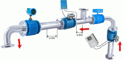 ⑴盡量避開鐵磁性物體及具有強電磁場的設備(如大電機、大變壓器的等),以免磁場影響傳感器的工作磁場和流量信號。