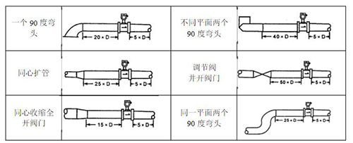 安裝要求:規(guī)范對(duì)高溫蒸汽流量計(jì)的安裝要求比較多,除了對(duì)高溫蒸汽流量計(jì)的前后直管段的要求如圖,