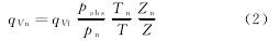 式中:qVn———標(biāo)況下的體積流量,m3/s;pabs———工況下測得的氣體的絕對壓力,kPa;pn———標(biāo)況下的參比壓力,101.325kPa;Tn———標(biāo)況下的參比熱力學(xué)溫度,293.15K;T———工況下測得的氣體熱力學(xué)溫度,K;Zn———標(biāo)況下的氣體壓縮因子;Z———工況下的氣體的壓縮因子。