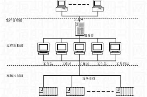 針對鎢礦選廠生產的實際需求,這里應用相應的自動化技術,對自動化監控系統進行了設計。在系統設計中,遵循“方案合理、技術先進、運行可靠、操作方便”的原則,系統整體采用集散控制系統,基于現場總線通訊,其整體網絡構架如下: