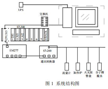集氣站是收集氣井所生產天然氣的站場,在集氣站內對天然氣進行節流降壓、加熱、調壓計量等各種工藝預處理,設備眾多且分散。為方便進行檢測和操作,必須進行統一的數據采集,在監控臺進行數據的管理。集氣站設備主要包括加熱爐、高壓型電磁流量計、分子篩、火災報警盤,以及供電設備 UPS 等,這些不同廠家的設備基本都支持Modbus 協議,通過 Modbus 通訊可以將這些數據采集。為了有效降低成本,設計了如圖 1 所示的系統。系統采用西門子 S7-300 控制器,通過以太網連接上位機監控軟件,再通過 MP277 連接S7-200 的方式。S7-200 控制器自帶 RS485 接口,能夠進行 Modbus 通訊,采集現場各種設備數據。*后通過以太網通訊將設備數據上傳至監控軟件,方便操作人員進行監控,該方案簡單有效,能夠實現集氣站內設備的狀態監控,數據處理,有效的進行天然氣的生產工作。