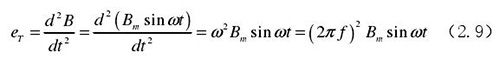 從上圖 2.5 中可以觀察到兩個電極、勵磁線圈、轉換器內阻之間形成了一個閉合回路,將此回路稱之為初級繞組,從理論上進行分析,磁力線 B 應當平行于勵磁線圈所產生的磁感應線,但在實際的應用過程中由于工藝差異,因此無法達到理想狀態,會產生磁力線穿過勵磁線圈磁感應線的情況,此時將會產生相應的感應電動勢,將此部分感應電動勢稱為變壓器效應。此效應同樣滿足于楞次定律,利用楞次定律進行計算可得如下電動勢: