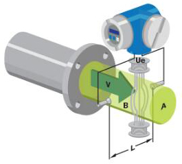 基本上,當導電液體流過磁場時,會感應出電壓。為了測量該產生的電壓(與流動的液體的速度成正比),使用了兩個彼此相對安裝的不銹鋼電極。