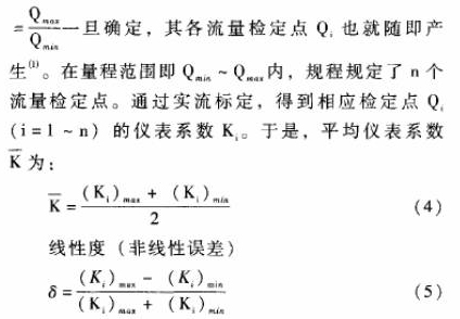 在QQmax,即在測(cè)量范圍之外誤差將超過δmax。這就是說雖然渦輪流量傳感器具有很好的重復(fù)性,但是由于電脈沖信號(hào)頻率F與體積流量Q之間是非線性的,按照常規(guī)的平均儀表系數(shù)`K的計(jì)算方法,對(duì)于一定的誤差限士A,由于非線性誤差的存在使得渦輪流量傳感器的工作范圍只能限定在Qmin~Qmax之內(nèi)。