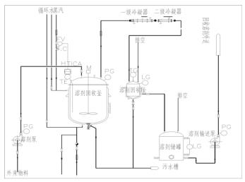 精細化工企業在生產過程中需要使用各種大量的有機溶劑作為反應介質、萃取溶劑,需要經常采用脫溶單元操作回收溶劑用于重復使用。為避免人工控制方式的不穩定性,采用了自動化控制脫溶單元操作全過程,起到了提高生產效率和產品質量,降低生產成本,改善勞動條件,保障生產安全的效果。根據有機溶劑不同的沸點和表面逸出能,設置不同的工藝控制參數調節溶劑的蒸發和冷凝過程,通常使用的設備是間歇式夾套管道流量計,通過調節進入夾套的蒸汽量控制管道流量計內料液的溫度和溶劑的蒸發量來實現脫溶單元操作,但是由于大型管道流量計夾套換熱面積與容積比值小,加熱溫度滯后性較大,使用人工調節控制脫溶的效果差,在實際生產過程中公用蒸汽的溫度和壓力晝夜變化大,人工控制不當會出現暴沸沖料現象,造成安全、環保事故。通過對現場控制的長期跟蹤和摸索,我們利用 DCS 控制系統采用固定時間間隔,控制升溫速率,實現了大型夾套式管道流量計回收有機溶劑的全自動控制脫溶單元操作。