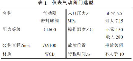 1) 蒸汽管道流量計出口管線總閥泄漏無法在線處理,導致氣化爐停車。在入氣化爐根部增加 2 臺儀表氣動閥門,要求每月進行 2 次開、關,防止閥門出現卡塞現象。 新增 2 臺儀表氣動閥門相關參數見表 1。