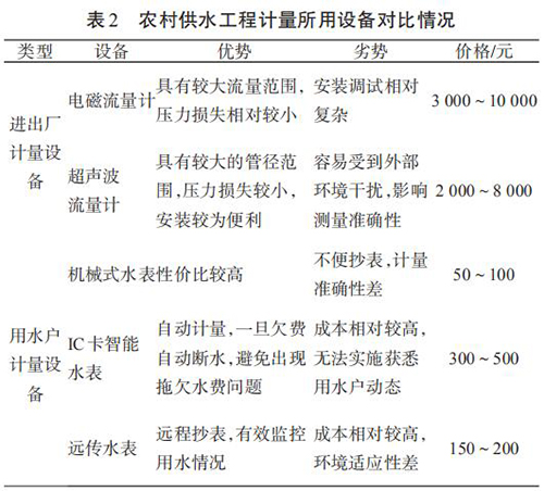 2 農村供水工程計量設備使用及經濟性分析