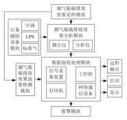 煙氣脫硫排放效果采樣模塊利用傳感器在循環流化床火炬氣流量計煙道內采集脫硫排放的煙氣樣本,煙氣樣本通過傳輸管線進入由分析儀與煙塵儀等組成的煙氣脫硫排放效果分析模塊,結合煙氣脫硫排放效果流量檢測模塊獲取的煙氣流量,分析脫硫后排放的煙氣二氧化硫濃度,獲取二氧化硫排放總量 ;隨后通過數據接收處理模塊采集、處理、顯示前三個模塊獲取的數據結果,并提供歷史查詢、報表打印、各部門間聯網等功能,若當前排放的二氧化硫總量超過設定的標準,則觸發報警模塊進行報警。為提升系統運行可靠性,通過設置后備輔助設備模塊來增加系統后備儲備及輔助設施。通過以上六大模塊共同運行,即可實現煙氣脫硫排放效果檢測系統的穩定運作。
