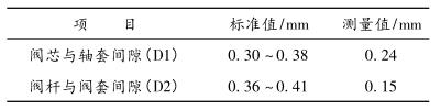 1)由上表可以看出,閥芯與閥套間隙(D1)、閥桿與閥套間隙(D2)明顯小于標準值,導致運行時出現(xiàn)局部卡澀現(xiàn)象。