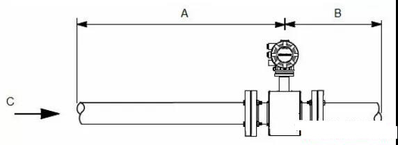 為了確保過程條件大幅度變化的情況下的規定精度,安裝傳感器時,在電極平面上游留出至少五倍管徑長度的直管段,在電極平面下游留出至少兩倍管徑長度的直管段。