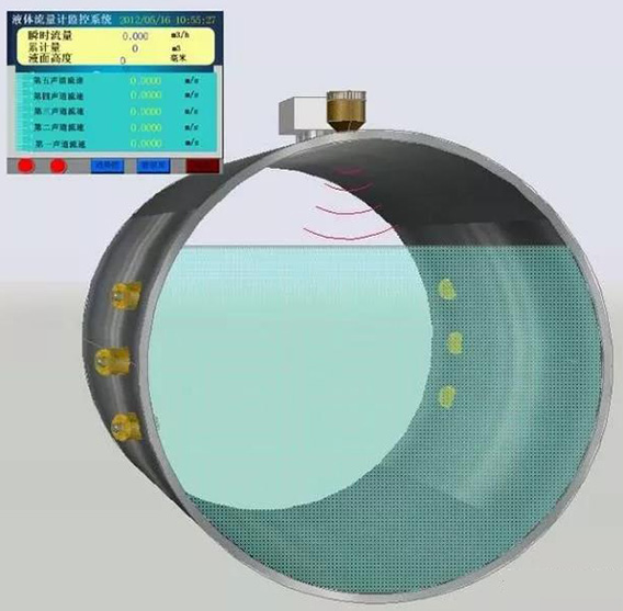 超聲波流量計的工作原理是,借助時差式測量原理,通過一對超聲波探頭發射信號穿過中間介質到達另一側管壁,被另一個探頭接收到,另一側探頭同樣發射信號被*一個探頭接收到。在這個過程中,由于信號的輸送時間受介質流速的影響,所以,存在一定的時間差。基于此,超聲波流量計借助相關公式計算出了相應的流量值。